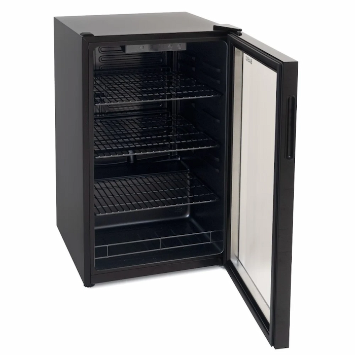 خصائص ثلاجة عرض باب واحد بيسك 4.4 قدم زجاج اسود :
