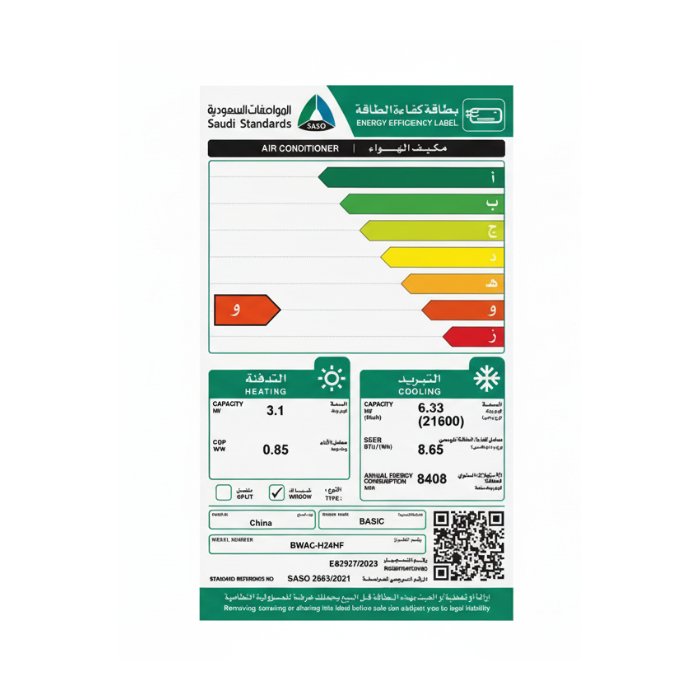 خصائص مكيف بيسك 21600 وحدة شباك حار \ بارد :