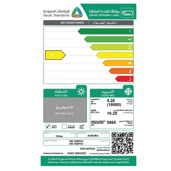 الوسوم: مكيف 18000 وحدة, مكيف أرورا, مكيف بارد فقط, مكيف سبليت