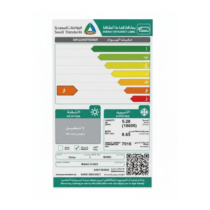 مكيف شباك بيسك 17600 وحدة – بارد BWAC-H18CF