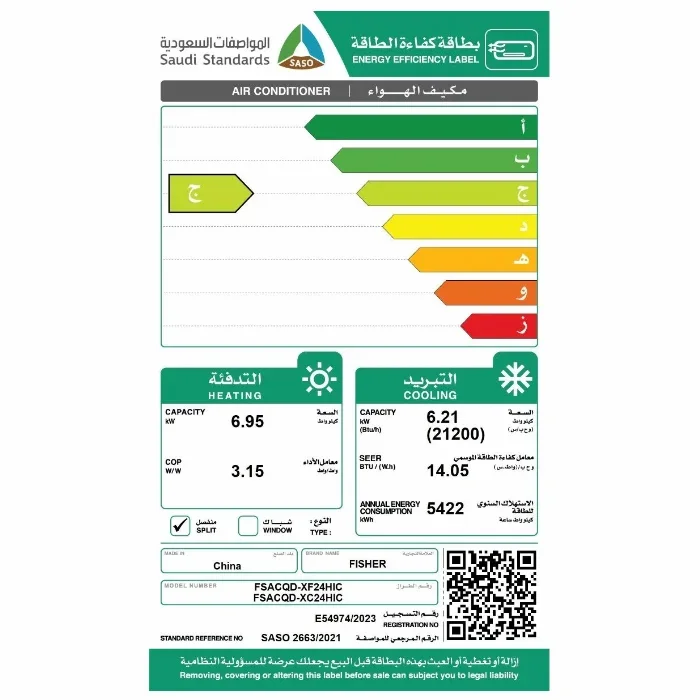 خصائص مكيف فيشر سبليت 21200 وحدة انفرتر حار بارد