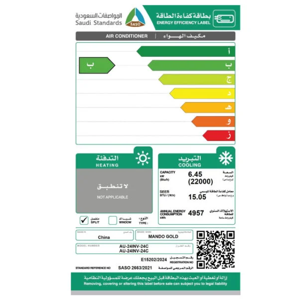 مكيف ماندو جولد سبليت 22,000 وحدة – بارد- انفرتر AU-24INV-24C