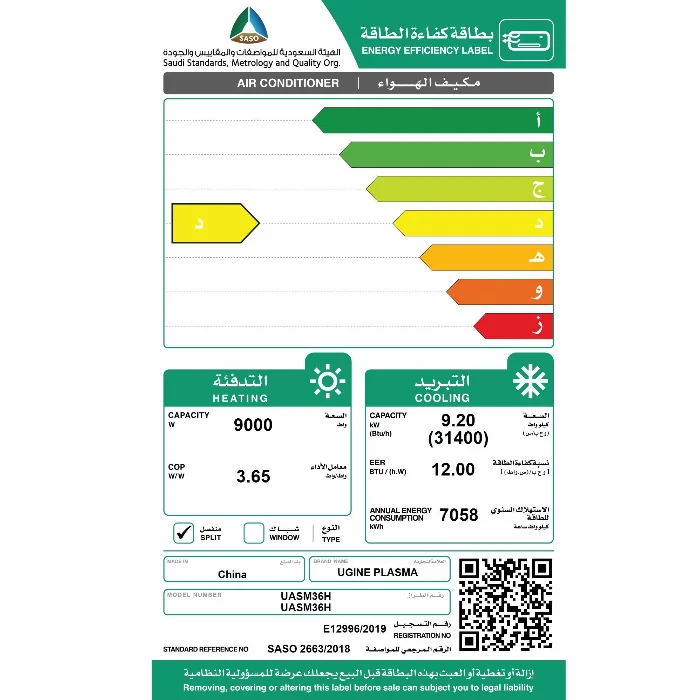 مكيف يوجين بلازما سبليت 31400 وحدة حار / بارد UASM36H