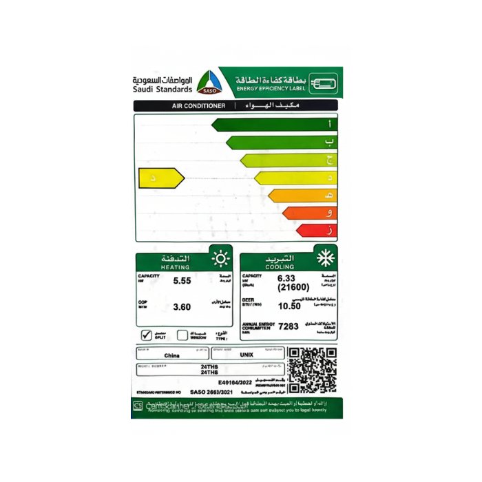 مواصفات مكيف يونكس سبليت 21600 وحدة حار / بارد :